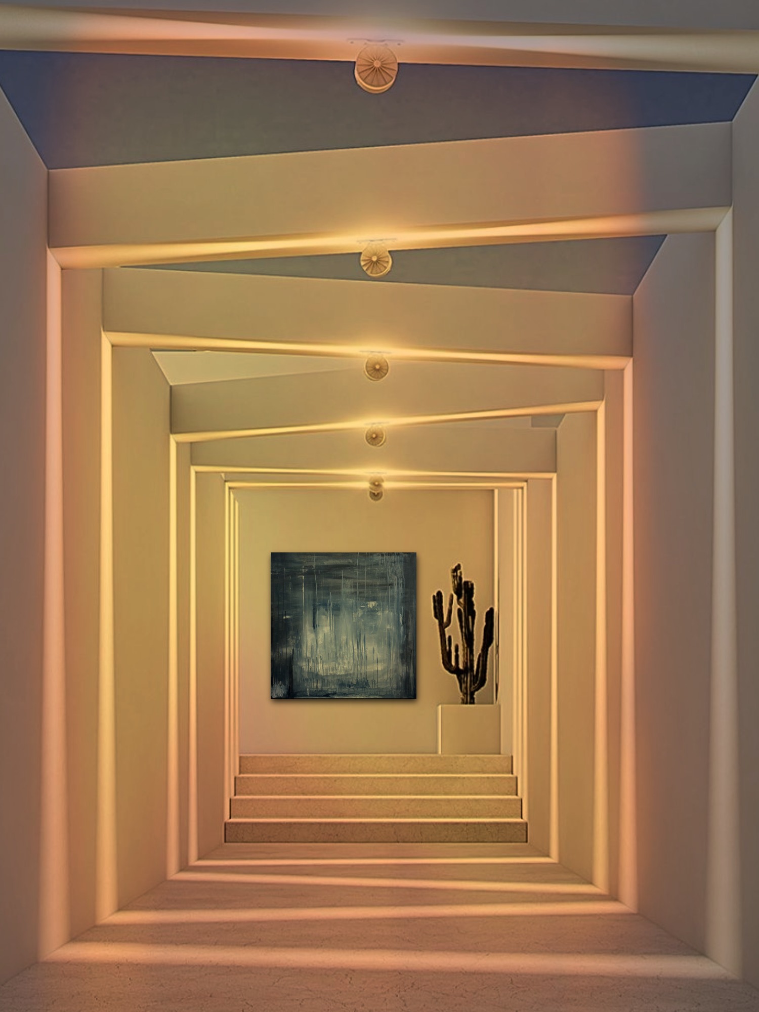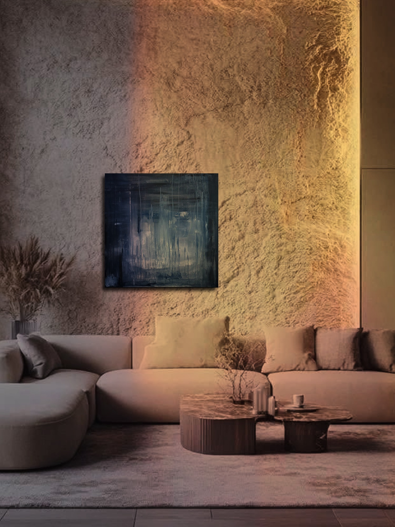 Говорит автор: В этой работе я обращаюсь к проживанию утраты - к глубокой печали и к тонкому состоянию, когда она начинает постепенно ослабевать. В первоначальной версии нисходящие потёки жидкого акрила фиксировали пережитый опыт и эмоцию грусти. В какой какой-то момент я перевернула холст, и композиция изменила свой вектор. То, что прежде текло вниз, превратилось в восходящий поток. В этом жесте проявляется лёгкое освобождение, ресурсное восстановление и импульс к подъему. Работа отражает момент перехода, когда появляется новая энергия, внутренние силы и способность к дальнейшему движению.