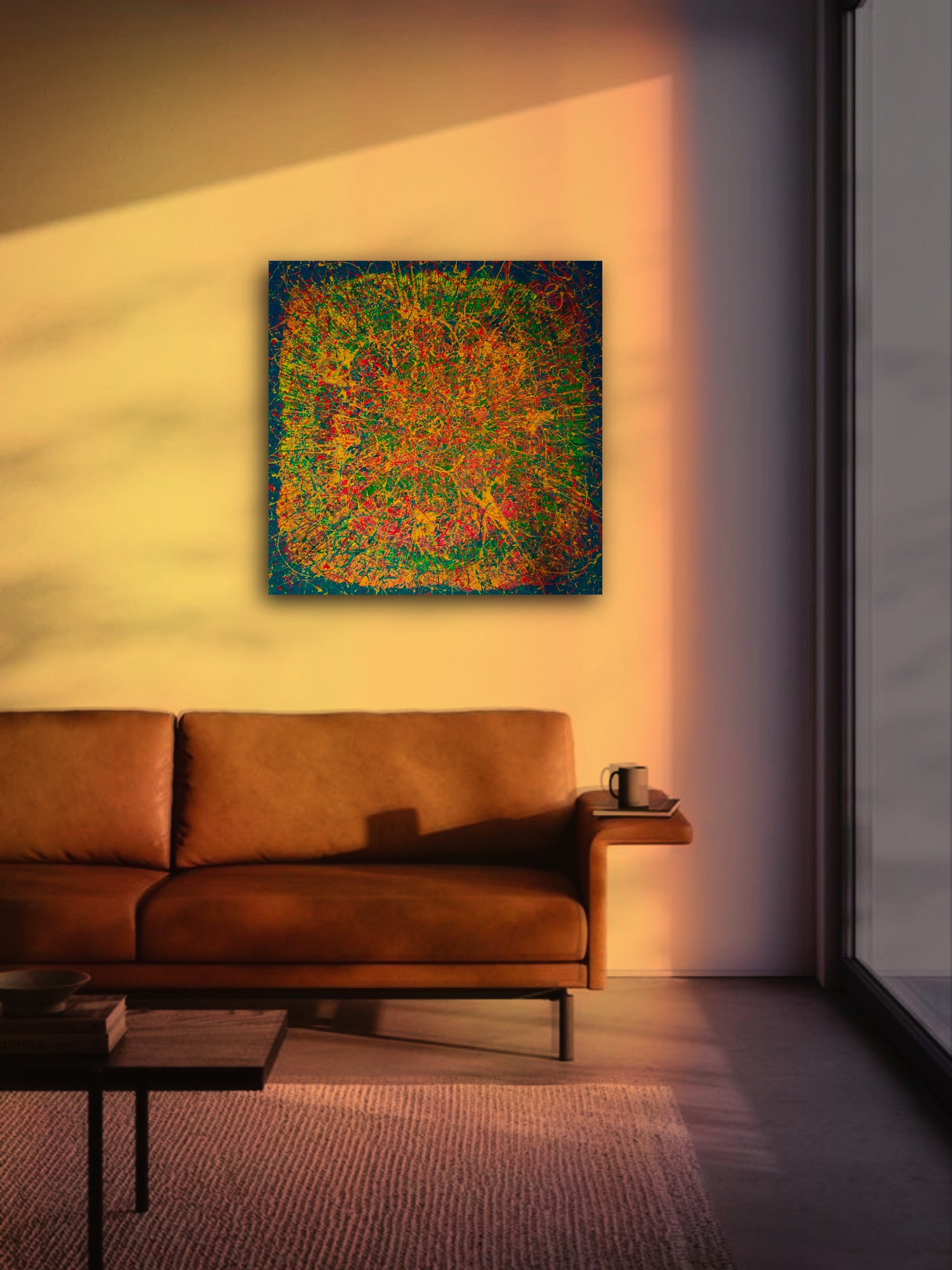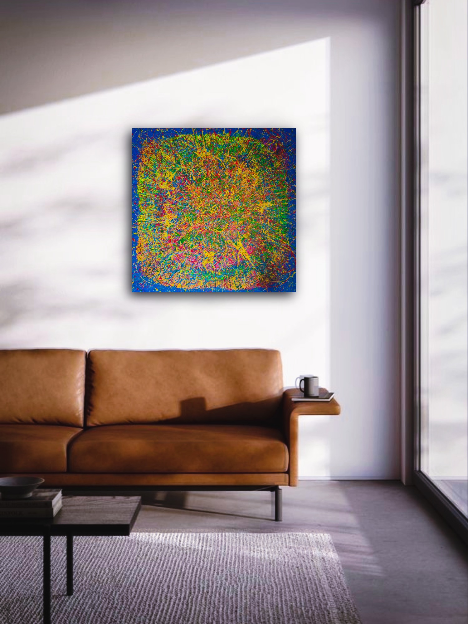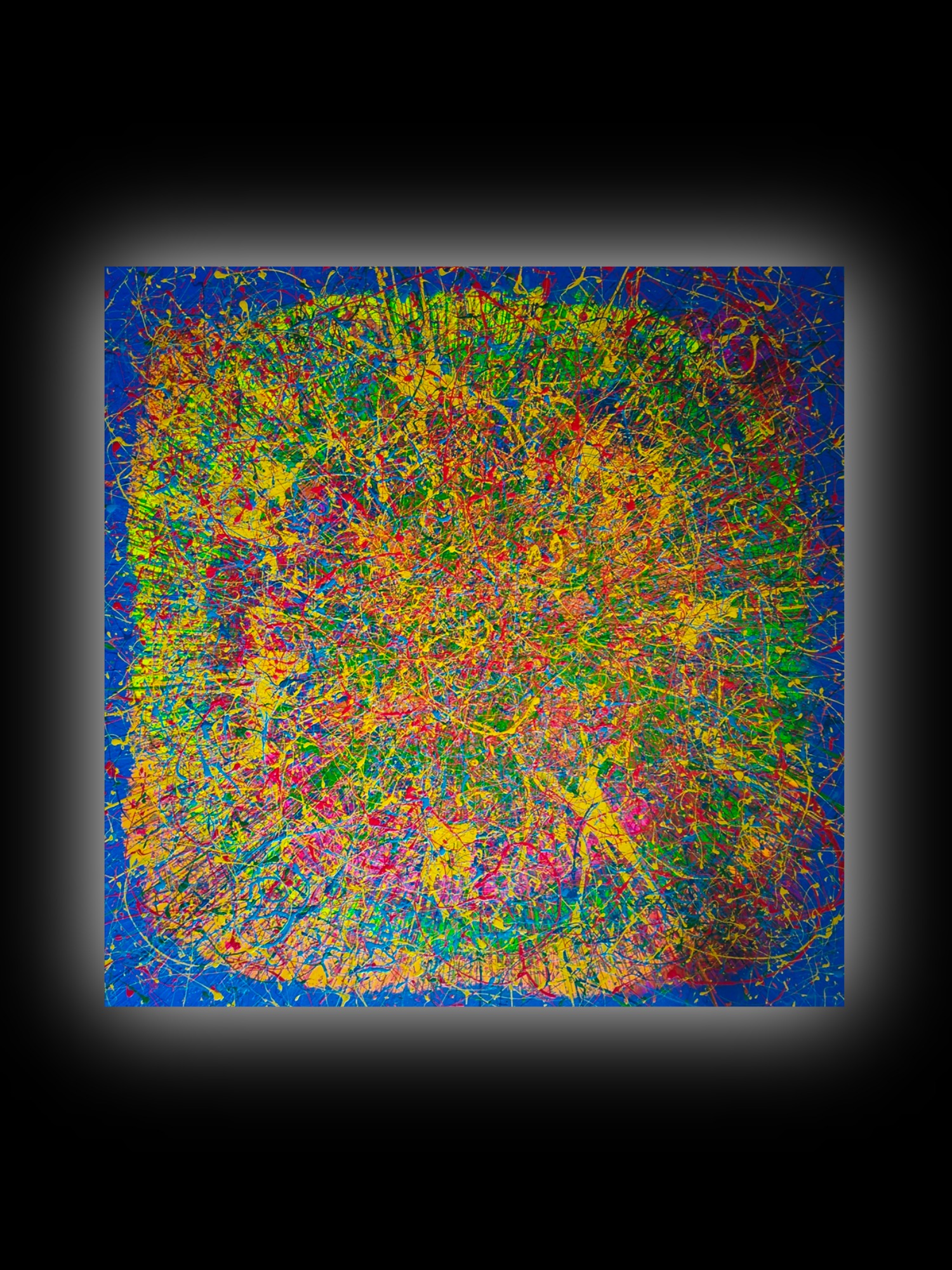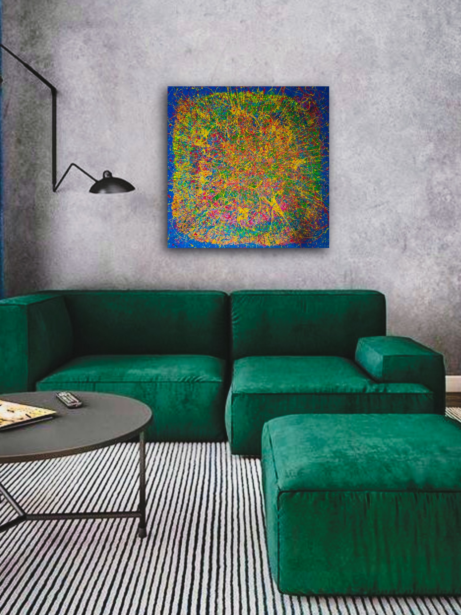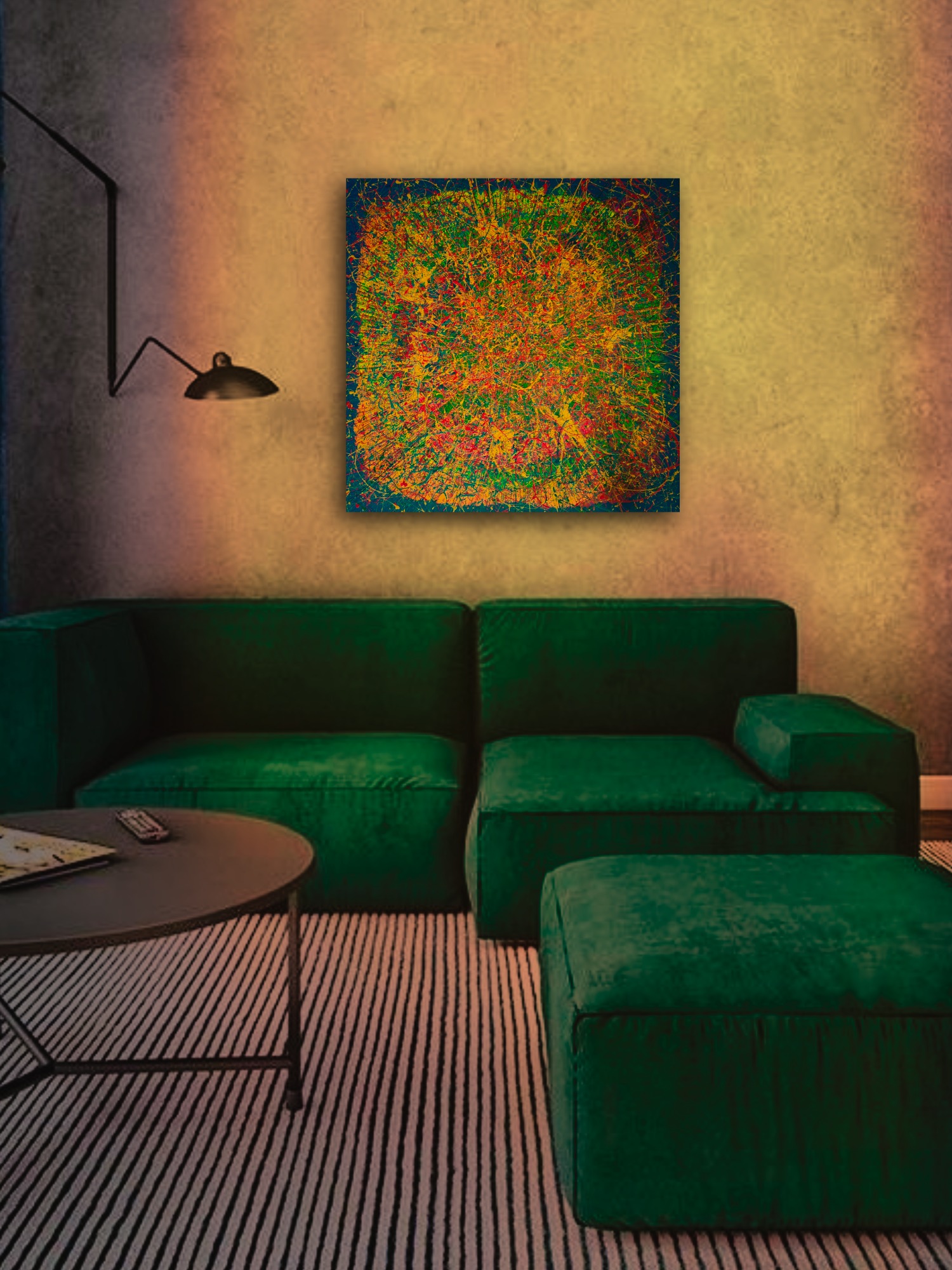 * кроме визуального воздействия в масштабных работах автора присутствует отчётливое аудиальное звучание - можно испытать эффект синестезии, знакомый нам по творчеству Кандинского, когда картину можно не только увидеть, но и услышать. Работа выполнена в технике дриппинг - при явных аллюзиях к работам Поллака можно заметить, что в отличие от их энтропии - движения к абсолютному хаосу, в работах Анатолия Морогая есть обратный эффект группирования осознанных форм - пойманных в движении и возникающих из внешнего хаоса. Картины автора одинаково удачно наполняют минималистичные интерьеры и пространства с выраженной доминантой цвета.