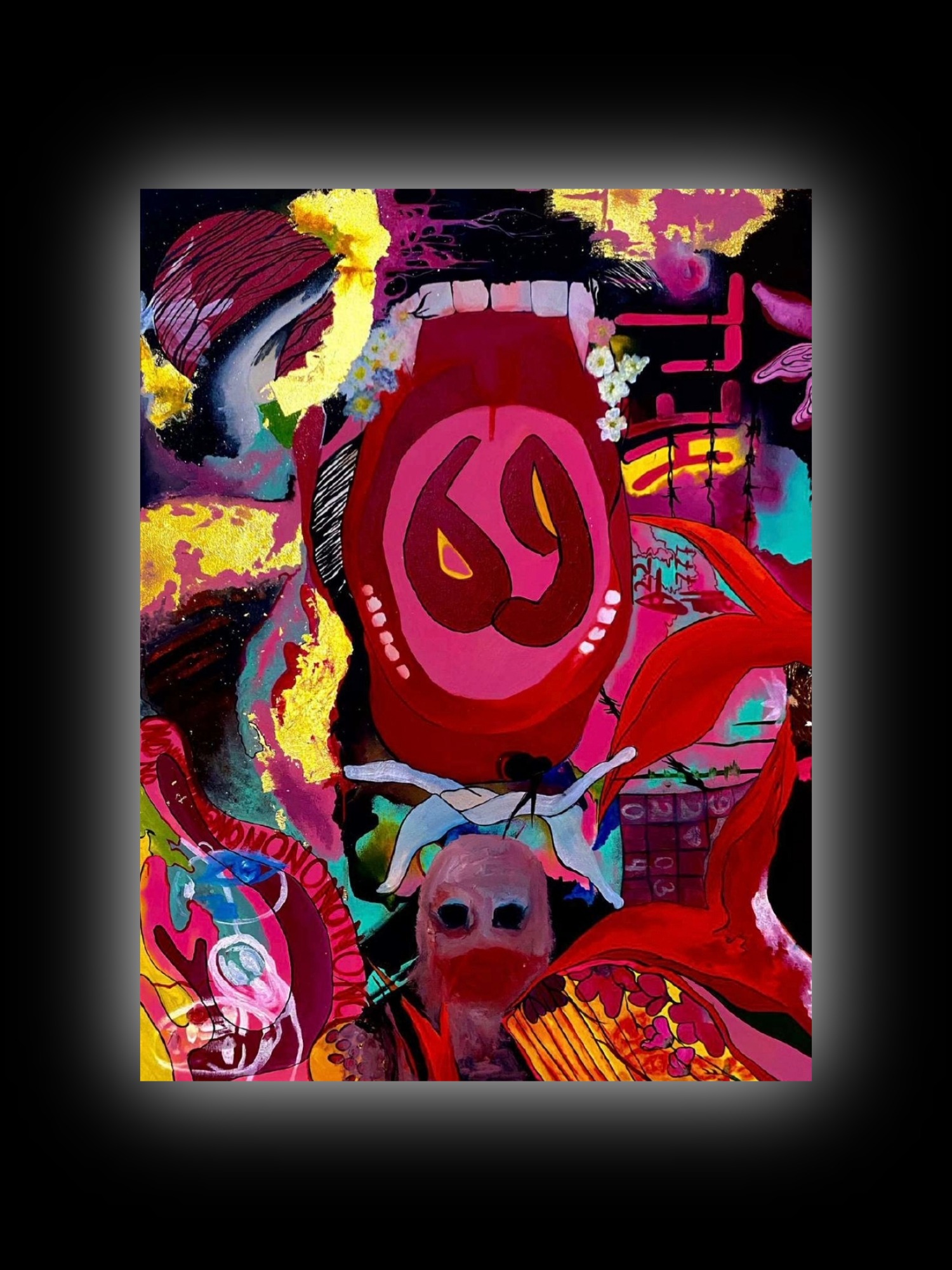 масло, холст, поталь зеркальная, тушь